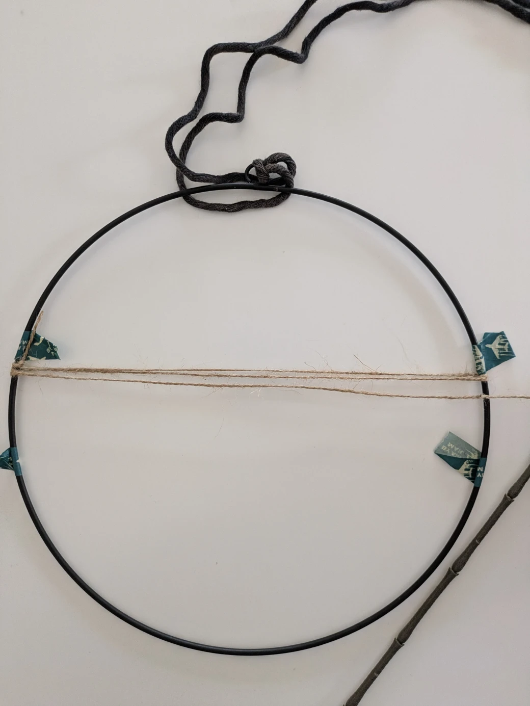 Zum Schluss verknotest du die Kordel gut. Achte dabei darauf, dass du den Knoten auf der Rückseite des Ringes positionierst, sodass er später hängend nicht mehr zu sehen ist.