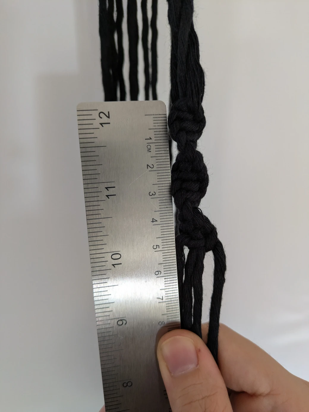 Next, measure a distance of approximately 15 cm and start again with the first group, tying right-handed spiral knots that should again be approximately 5 cm long.