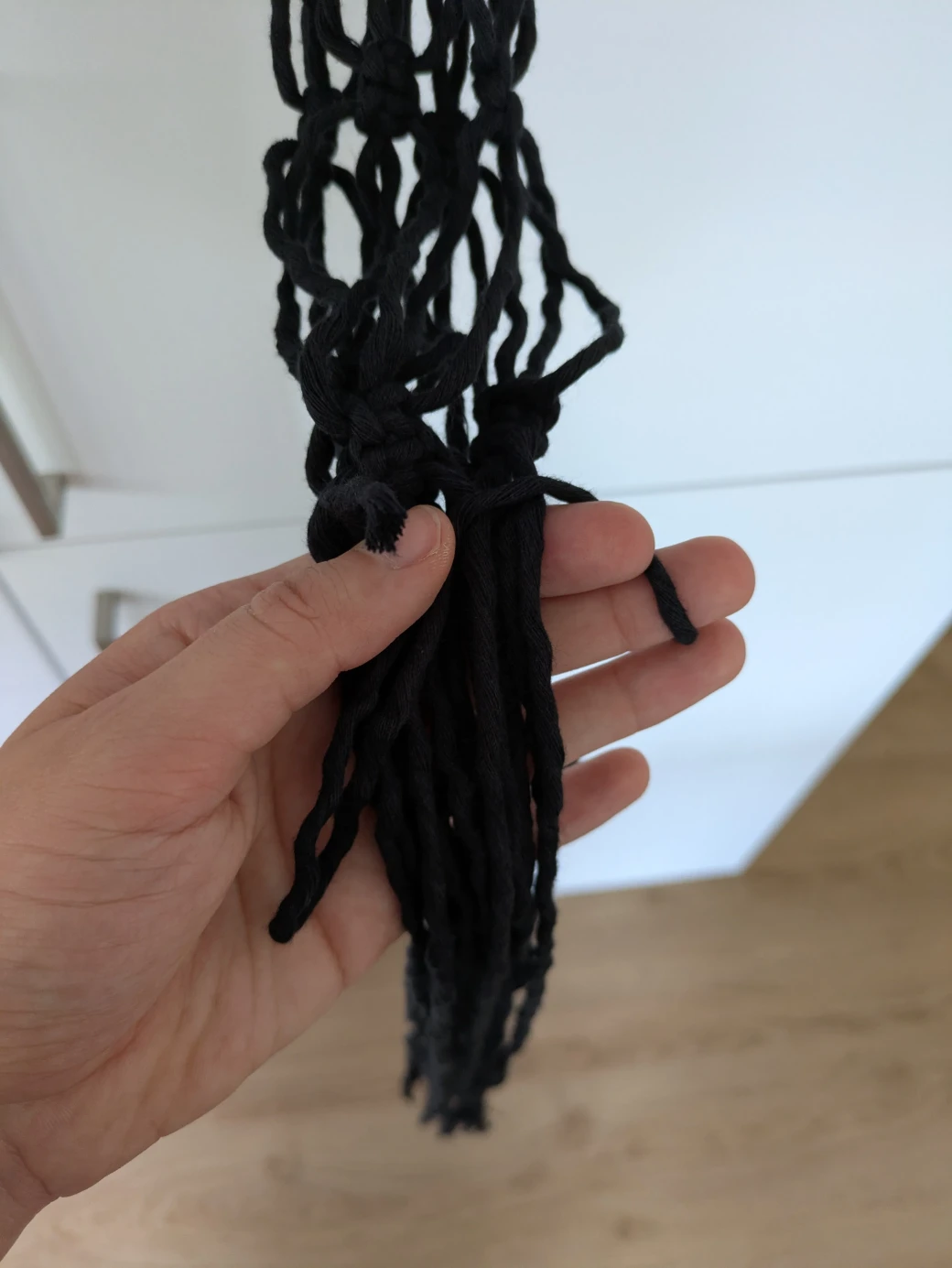 Now you can cut all the threads of the hanging basket to the desired length and, if preferred, comb them out. Your first hand-knotted hanging basket is complete.
